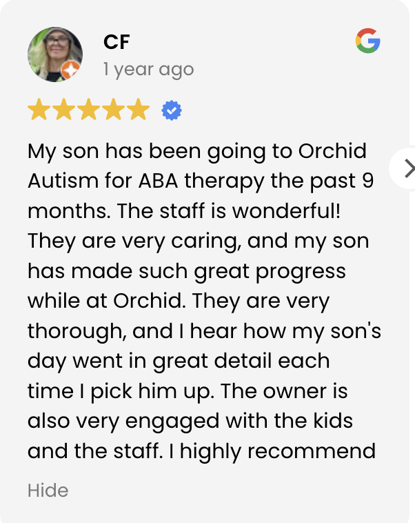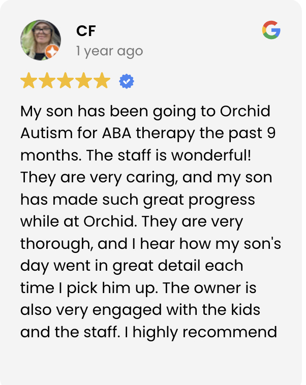 Posted on tamarah tumayTrustindex verifies that the original source of the review is Google. As a parent of a child with autism, finding the right center has been a long and emotional journey. My daughter had previously attended another center where, unfortunately, we saw very little improvement. However, after enrolling her in this center, I have witnessed a truly remarkable transformation. From the very first day, I noticed the difference in the level of professionalism, compassion, and individual attention each child receives here. The team is exceptionally well-trained, patient, and genuinely dedicated to understanding each child’s unique needs. They create a warm and supportive environment that encourages growth, learning, and confidence. My daughter has shown noticeable improvement in her communication, social interaction, and daily living skills. She has become more expressive, independent, and happy — something I had been hoping to see for a long time. The programs offered by this center are structured, evidence-based, and thoughtfully designed to help every child reach their full potential. I am profoundly grateful to all the staff and therapists for their tireless effort, professionalism, and kindness. Their work makes a real difference not only in the lives of the children but also in the hearts of their families. I wholeheartedly recommend this center to any parent seeking quality, compassion, and real progress for their child. thank you Orchid Autism.Posted on Daniel PintoTrustindex verifies that the original source of the review is Google. Orchid Autism is hands down the best ABA and Speech Therapy facility we have taken my son too. The staff are wonderfully kind people. My son never fights going to his therapy sessions. The management is always willing to help accommodate the schedule as needed and are very open about wanting critiques to constantly improve your family's experience at Orchid. The best part is since switching to Orchid from a previous facility my son is thriving here. His progress in ABA/Speech and the skills he is learning have been life changing for us. Needless to say we we love Orchid and it was one of the best choices we made for our son.Posted on Katie WardTrustindex verifies that the original source of the review is Google. My son has been attending therapy here for a little over a year now. He loves it! And we love them. I know my son is in good hands when I drop him off. He's made so much progress in his time there. Everyone there is so dedicated and caring, and I never have to wonder what's going on with his program or his progress. I'm thankful to have found them. And if you're considering ABA therapy, you should check them out, too.Posted on Jillian DukeTrustindex verifies that the original source of the review is Google. My son has been attending ABA therapy full time (40 hours a week) since around March. He is almost 10 years old, level 3 ASD and nonverbal. He attended special education classes in public schools for 6 years, we saw none to very little improvement in any aspect. Since being at Orchid, we have already seen some promising improvements and we are so happy to have found Orchid. I spent years trying to find help for my son and Swapnil (owner) was more than helpful and incredibly accommodating and reassuring. The staff are all wonderful to myself and to my son! Extremely easy to access anyone I need to speak with, the techs are amazing and you are very much kept up to date DAILY on how your child’s day went and they go above and beyond. I absolutely recommend Orchid to any other parent out there questioning where to place your child or finding an ABA therapy group that fits your lifestyle.Posted on MTrustindex verifies that the original source of the review is Google. I recently visited this autism clinic for a tour and had a great experience. I spoke with the owners and the BCBA, who were both incredibly knowledgeable and took the time to thoroughly explain their process and approach. I also had the opportunity to meet several staff members—everyone was warm, friendly, and welcoming. The clinic itself was very clean, well-organized, and filled with a variety of fun and engaging resources for the kids. It’s clear that they’ve put a lot of thought into creating a supportive and enriching environment. I left feeling very confident in the quality of care they provide!Posted on Galina PetlakhTrustindex verifies that the original source of the review is Google. Orchid Autism stands out as a very knowledgeable, professional and caring Company! Its Staff always provides the best care and services. My recent experience was more than satisfactory and I highly recommend Orchid Autism! Thank you !Posted on CFTrustindex verifies that the original source of the review is Google. My son has been going to Orchid Autism for ABA therapy the past 9 months. The staff is wonderful! They are very caring, and my son has made such great progress while at Orchid. They are very thorough, and I hear how my son's day went in great detail each time I pick him up. The owner is also very engaged with the kids and the staff. I highly recommend Orchid. I'm excited to see my son meeting all his goals while getting ABA therapy here.Posted on Kim WegnerTrustindex verifies that the original source of the review is Google. My son has been going to Orchid for ABA since they opened their doors. Unlike so many ABA providers who have lost touch with their customer base, the Orchid family has been so welcoming and accommodating. The clinic is not overly large but they have an awesome sensory gym and themed rooms to help these kids excel with real life skills. I would highly recommend considering this team to help your child grow and succeed.